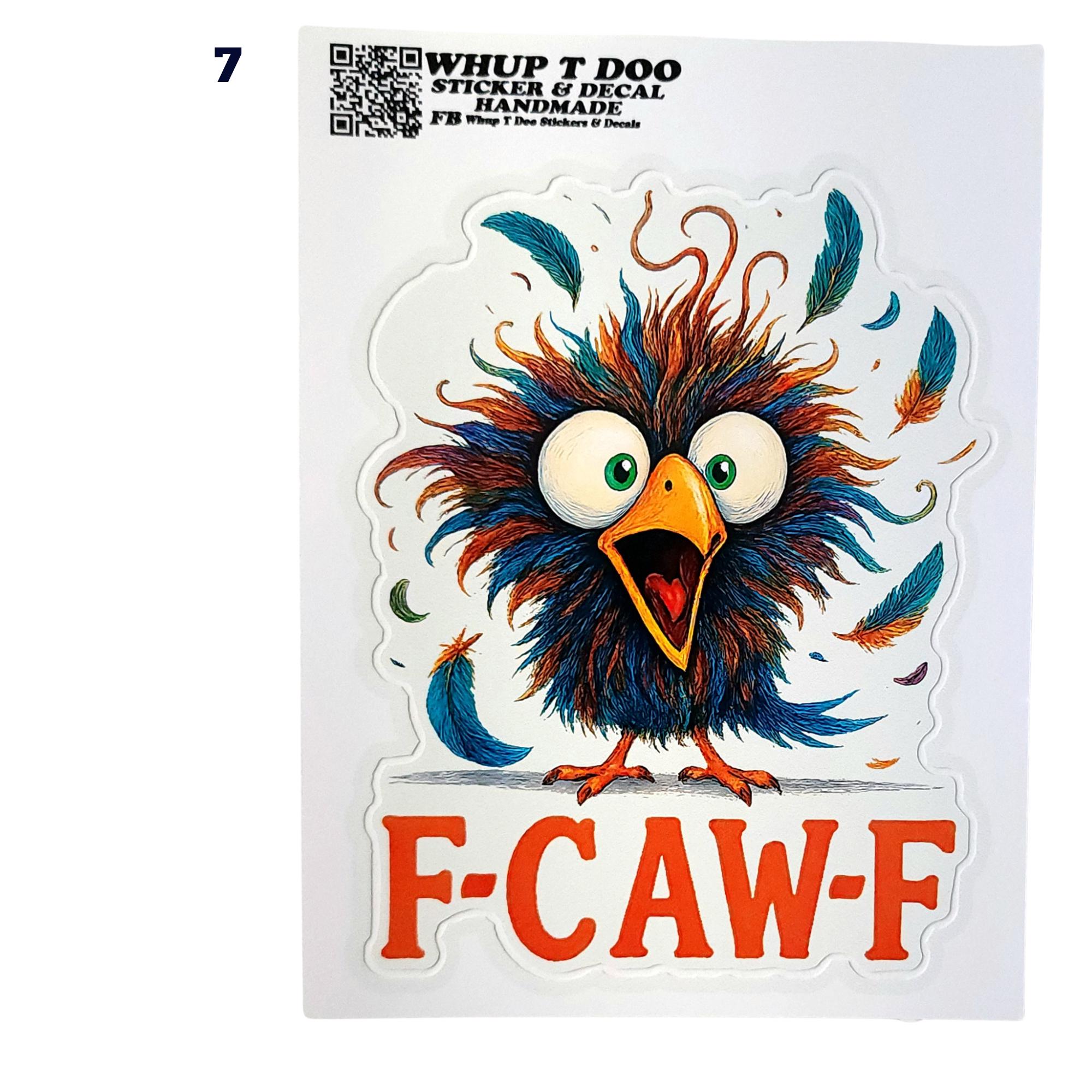 F caw f chicken sticker,Funny Adult rooster sarcasm . Put on water bottles, tumblers, mugs, yetis, Mirrors , windows, notebooks, journals, planners, Lap tops, tablets, kindles, cars, bikes, scrapbooking and more. Available size are 3”,4”,5”,6”. If you want bigger just message me. We can customize for you like adding a name for example.