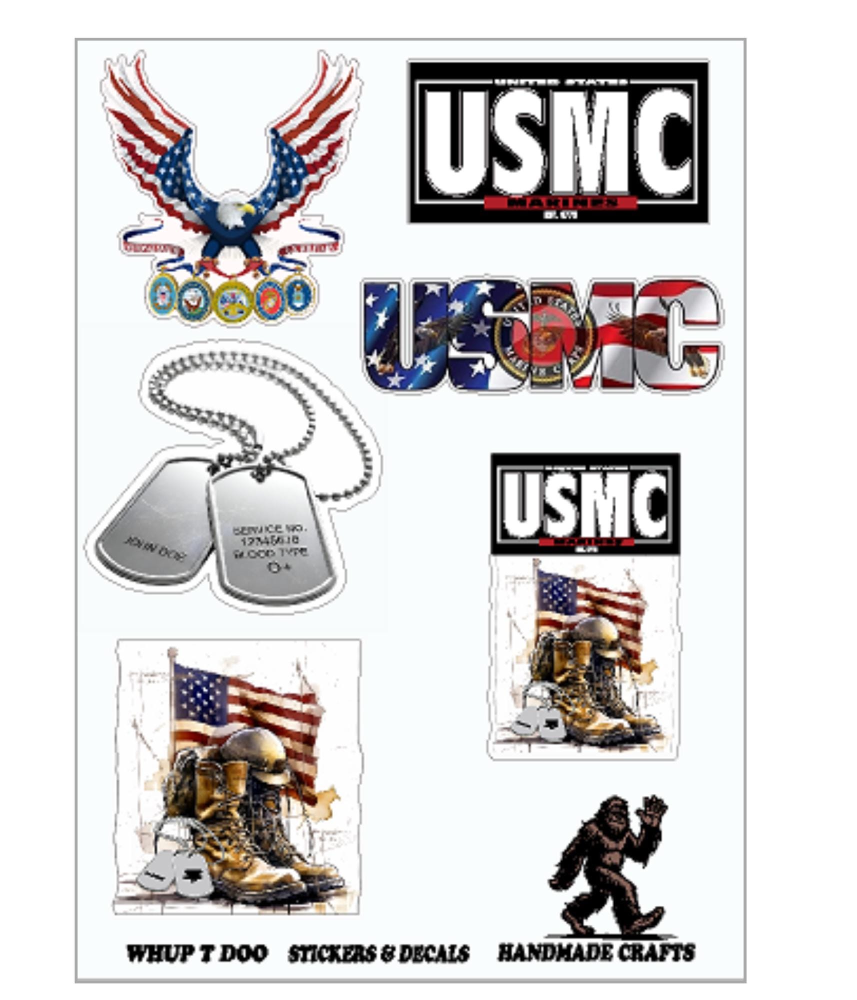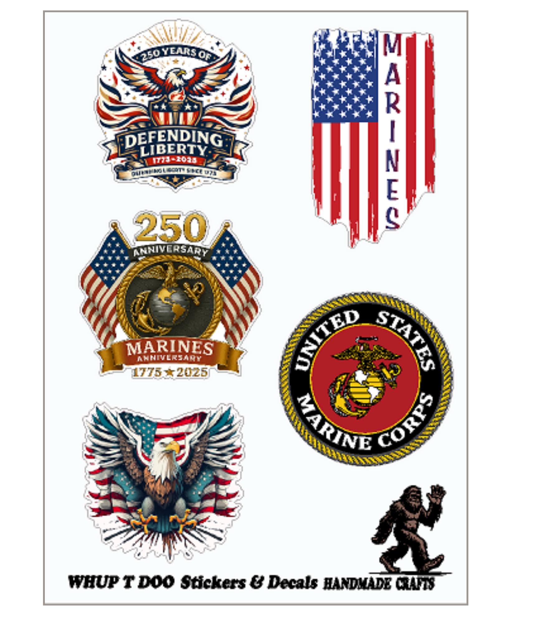 United States Marines . These sticker sheets have approx 6 sticker that are about 2 inches each. Help show your pride and Decorate you water bottles, tumblers, yeti, put them on small fridge, ice chest or toolbox, or put them on lap top, tablet, kindles, journal, planners and more. I have individual stickers for sale at bigger sizes.,