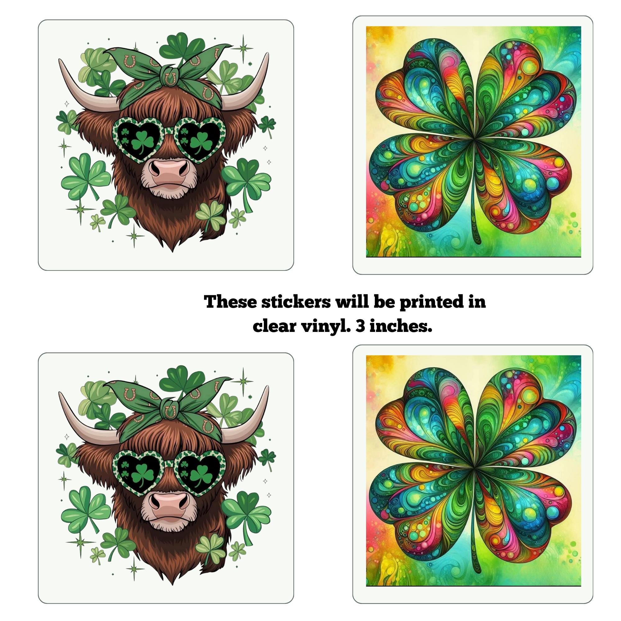 St Patrick’s day stickers.you will get 4 sticker approximately 3 inches each , they are printed on a high quality clear vinyl. And that means any white or very light will be see thru. These stickers will be perfect to put on a water bottle or tumbler to decorate for March for St Patties day . Bring a little luck into your life with these 2 stickers and celebrate St Patrick’s day! Theses stickers can be put on water bottles, tumblers, yeti, small fridge, ice chest, tool box or laptop, tablets, kindles, journals, planners and more. If looking for a bigger size or on a white vinyl please send me message