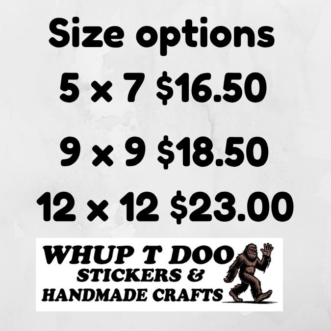 These beautiful ,colorful pictures are printed on canvas then wrapped around a wood frame and you can hang on a wall or put on a shelf. If you want something bigger message me .