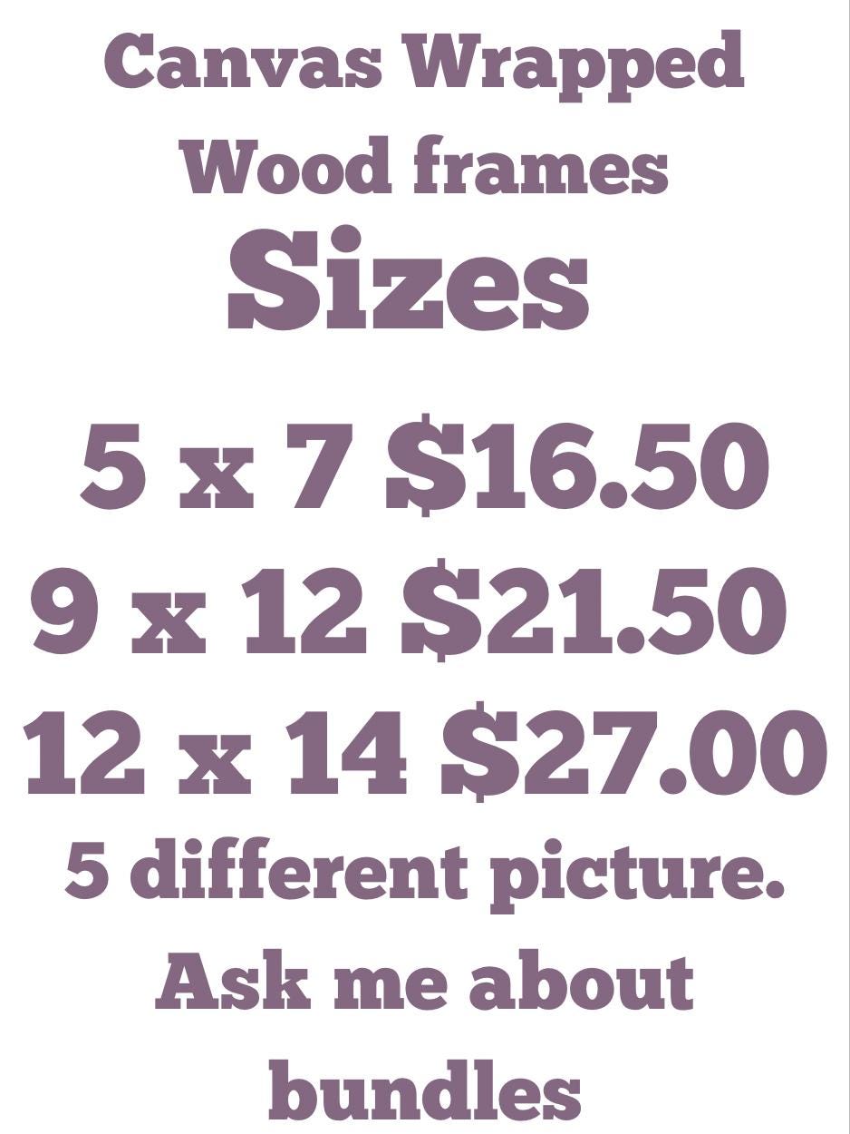 These beautiful pictures are printed on canvas then wrapped around a wood frame and you can hang on a wall or put on a shelf. If you want something bigger message me .
