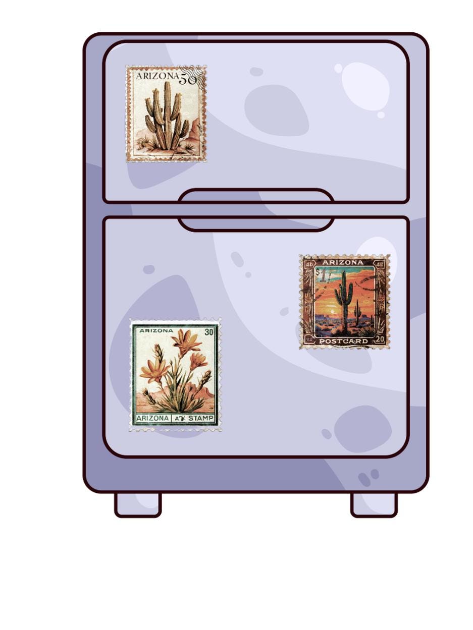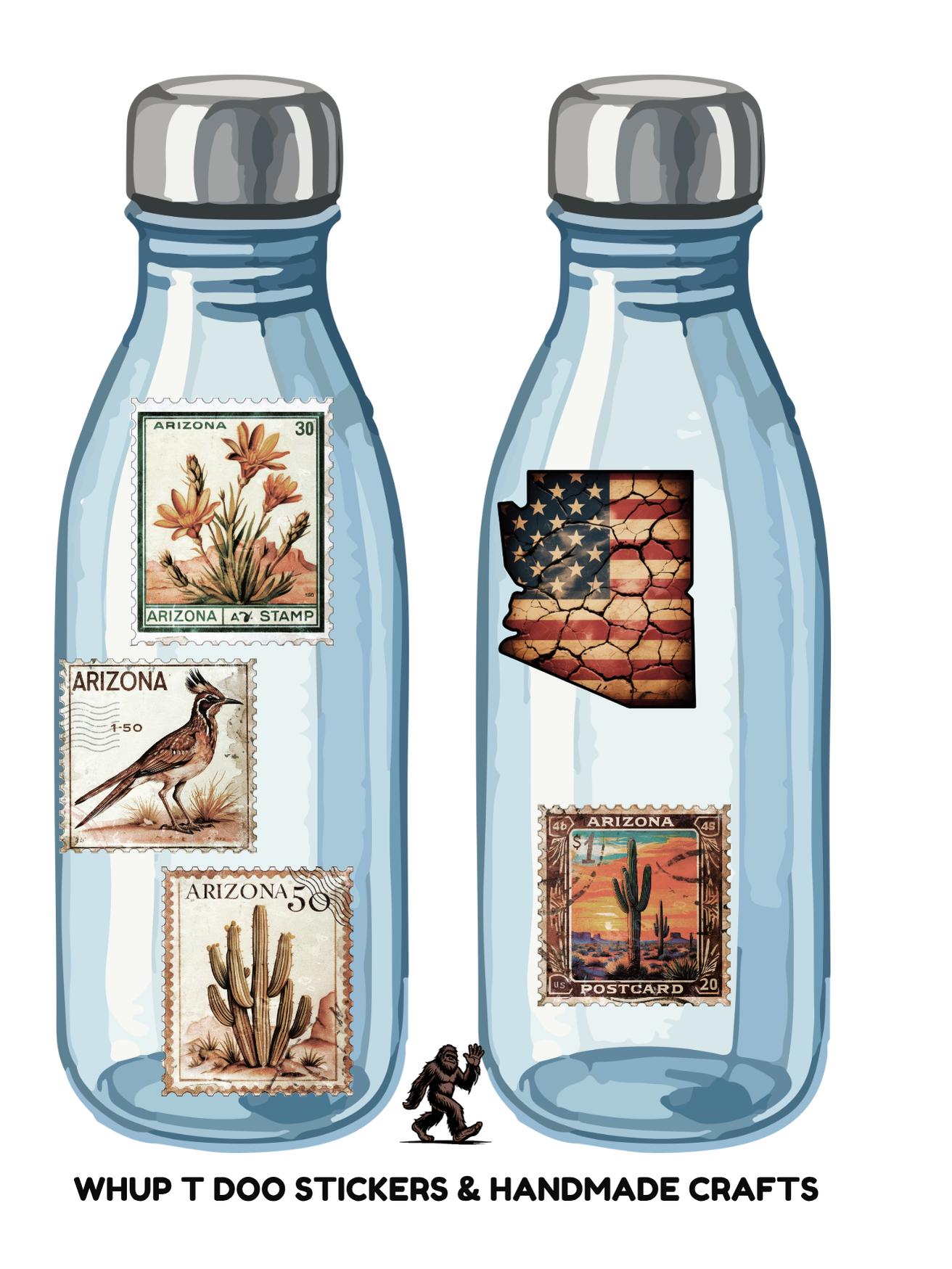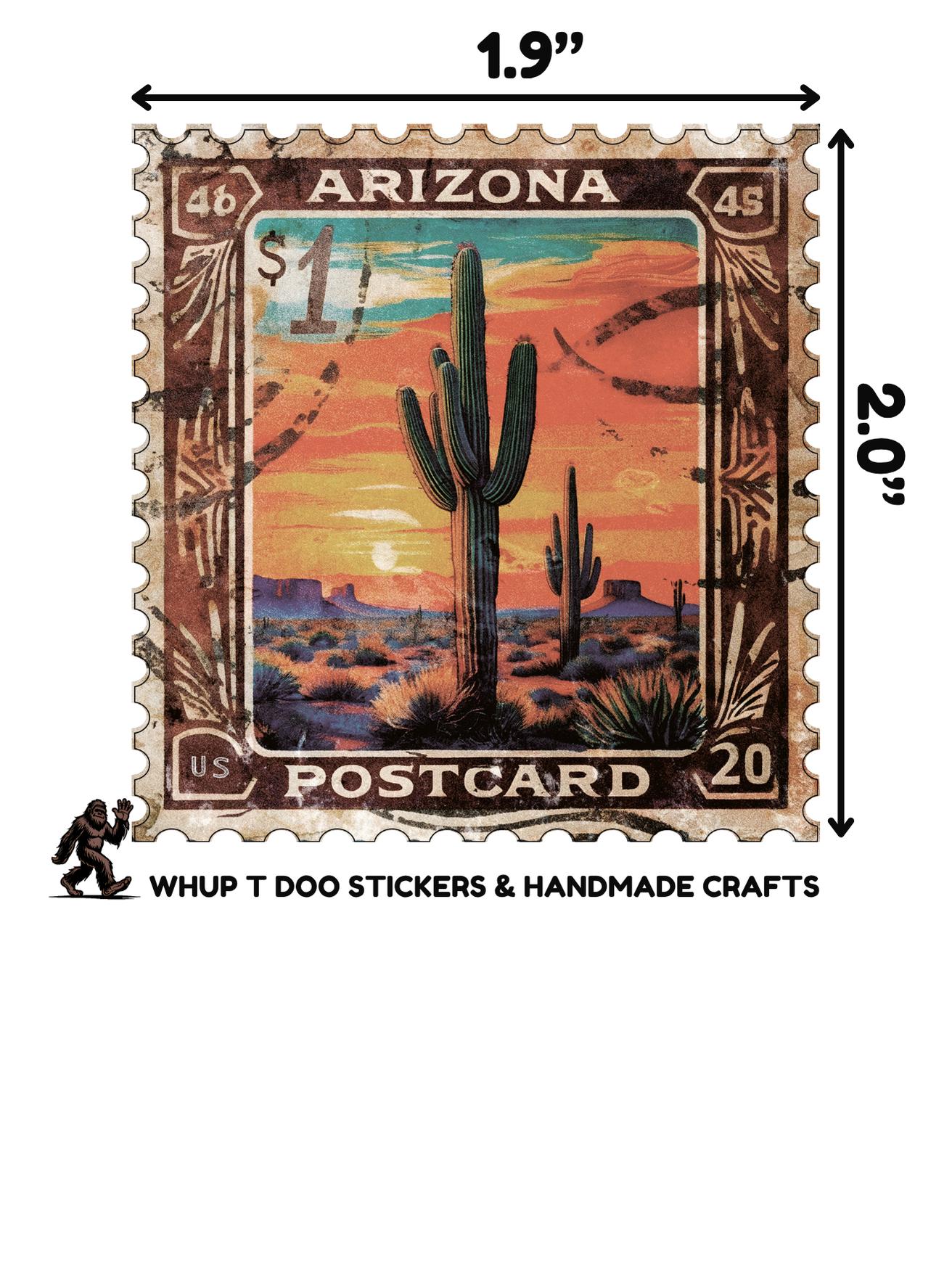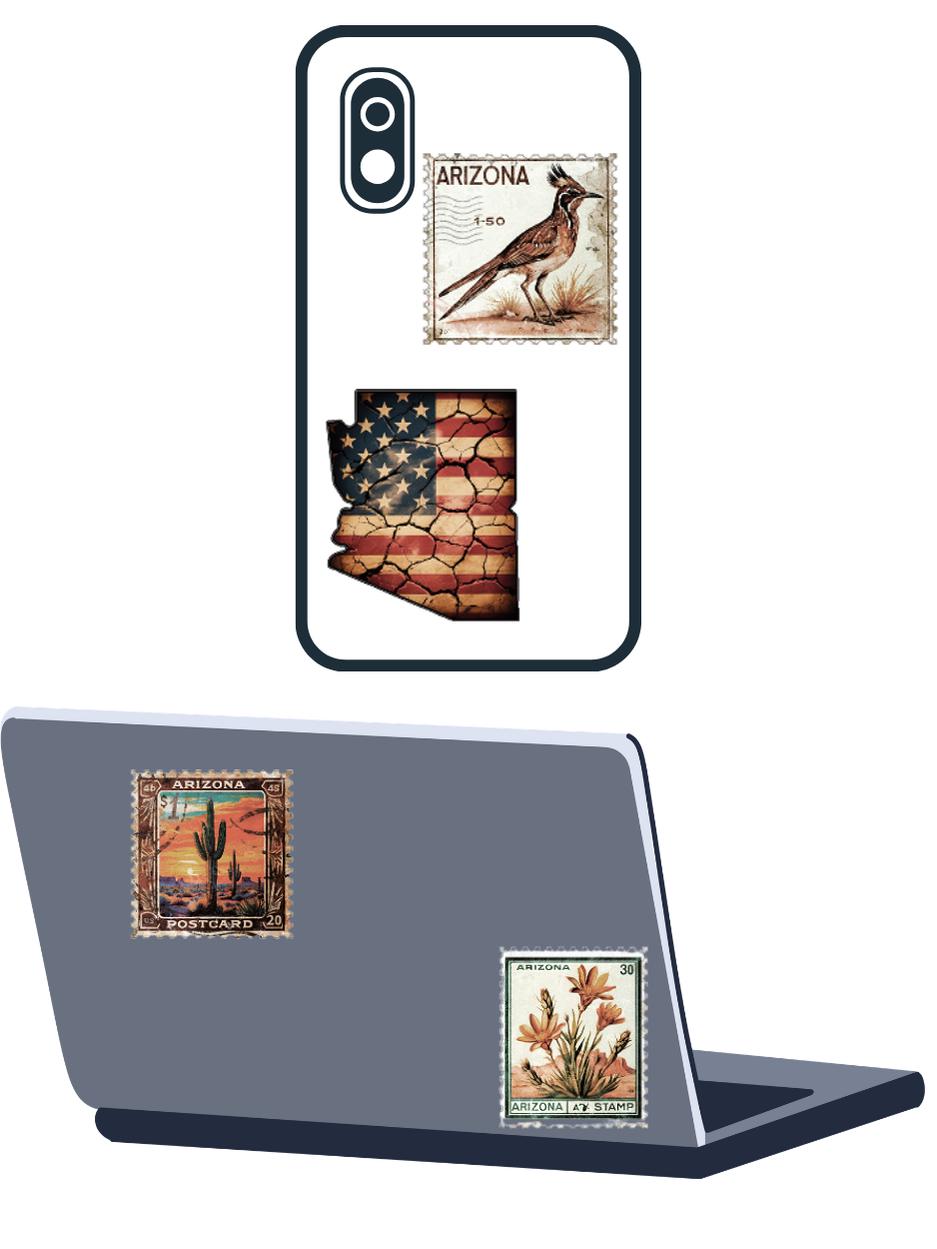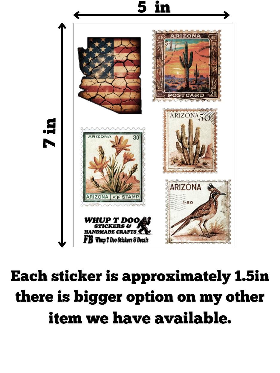 These decorative decals/stickers is a vintage-style of stamps feature Arizona themed imagery like saguaro cactus, desert landscapes and Arizona state map . They are designed to look historic postage.